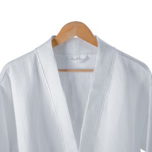 Chất liệu tuyệt vời cho áo choàng tắm khách sạn chính là cotton dệt kiểu tổ ong. Áo choàng tắm tổ ong thoáng khí, hút ẩm tốt, tạo cảm giác khô thoáng nhanh chóng. Đặc biệt, rất thân thiện, an toàn với làn da nên được sử dụng rộng rãi tại khách sạn.